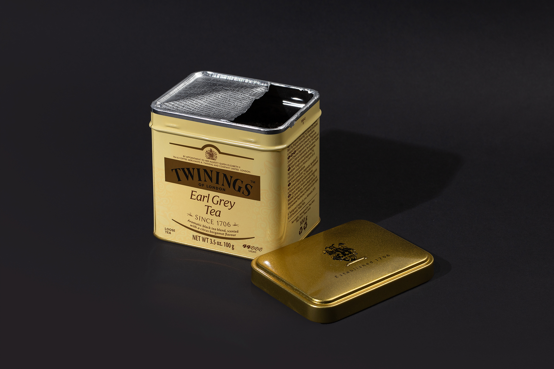 트위닝스 패키지 특유의 골드 뚜껑의 질감과 라인을 강조하는데 중점을 두어 촬영하였습니다.